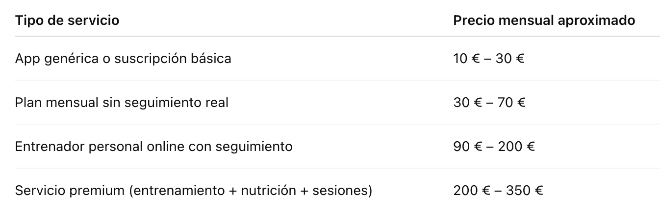 1. ¿Cuánto cuesta un entrenador personal online en 2025?